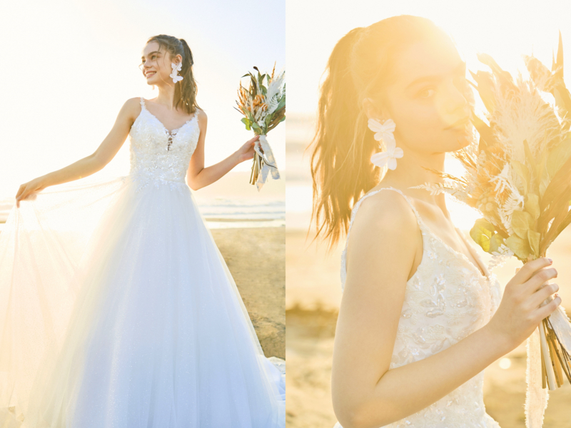 現地サロンにてコーディネーターがお好みやイメージをお伺いし、ご試着の上で衣裳をセレクトしていただく衣裳プラン。お手軽さにこだわりたい方にぴったりです。