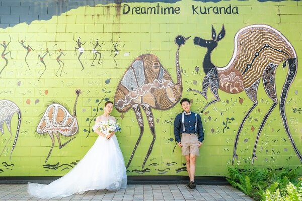 世界遺産のキュランダにてポップな雰囲気やローカルを感じられる楽しいお写真撮影に加え、オーストラリアならではのコアラフォトが叶います。一生に一度のフォトウェディングがより一層特別感あふれる時間に。可愛いコアラを抱っこしたお写真撮影が楽しめます。