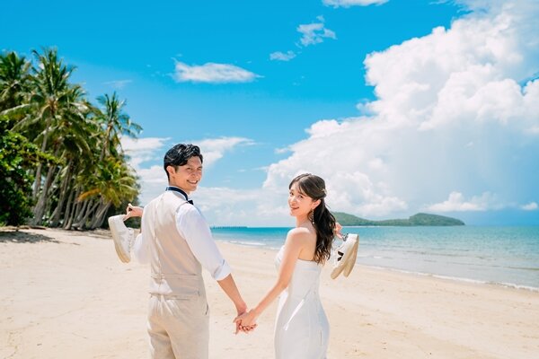 パームツリーが揺れる穏やかなビーチや、可愛らしいショップやレストランが並ぶ街並みで、南国らしいやわらかな空気を感じながら撮影を楽しめるプランです。観光地の喧騒から少し離れた静かなリゾート地で、ナチュラルかつ上質なフォトウェディングが叶います。