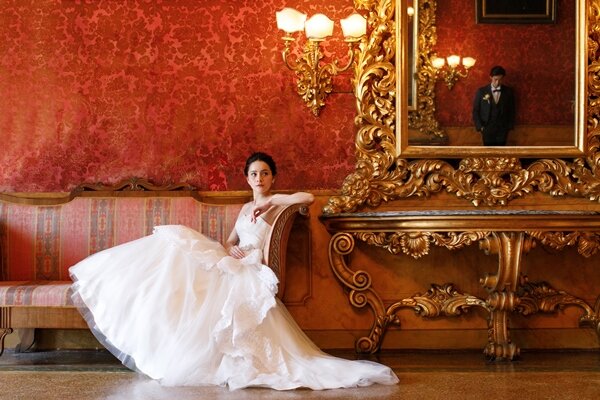 観光地での撮影とはまた違った雰囲気で行うフォトウェディングプラン。衣裳は現地にあるデザインからイメージに合う1着をお選びいただけます。タイムスリップしたかのような空間での屋内撮影はどこを背景にしても絵になり、気持ちが高鳴ります。また、手入れが行き届いた美しい庭園では優しい風に包まれながらリラックスした雰囲気での撮影が叶います。