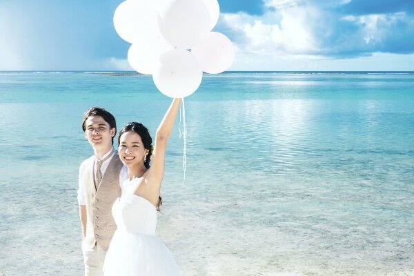 空と海を近く人感じながらのフォーマル撮影、透き通るほどの美しさに見惚れる海を背景にしたビーチ撮影、おしゃれなフォトスポットがあるガーデンでの撮影が叶います。写真のバリエーションも増えるのでお揃いのアイテムを用意してロケーション毎に雰囲気を変えた撮影を楽しむのもおすすめです。