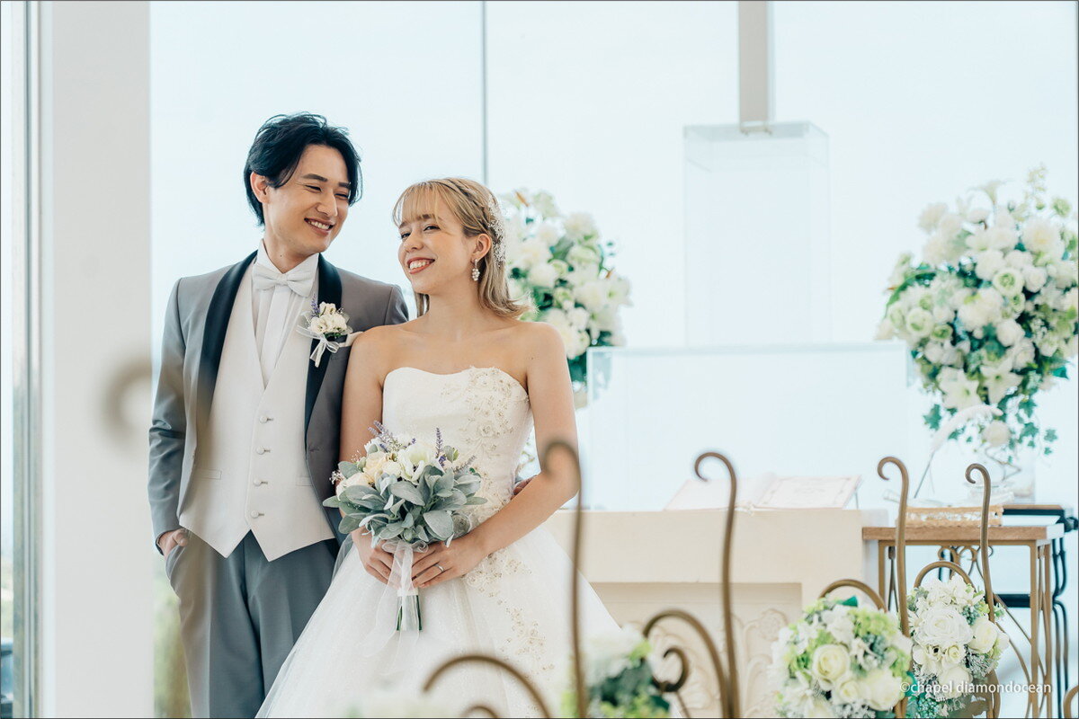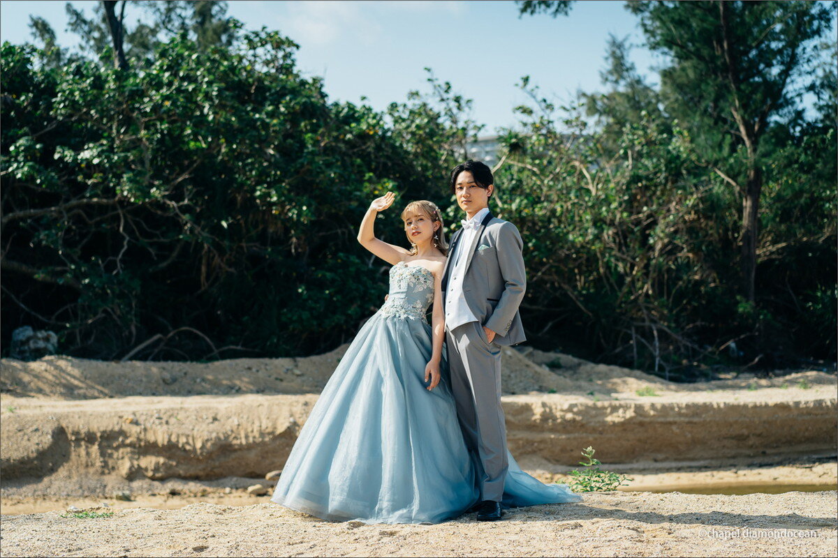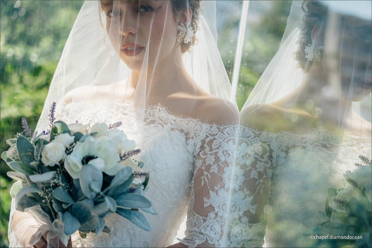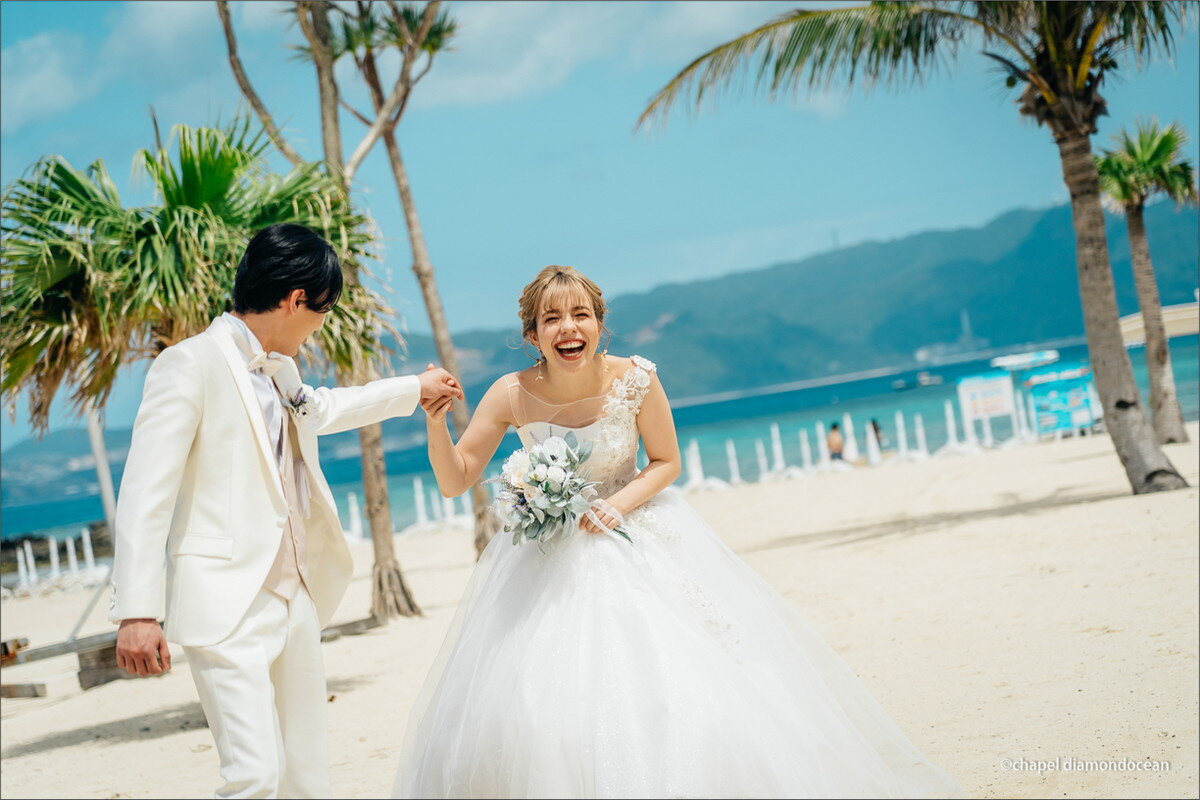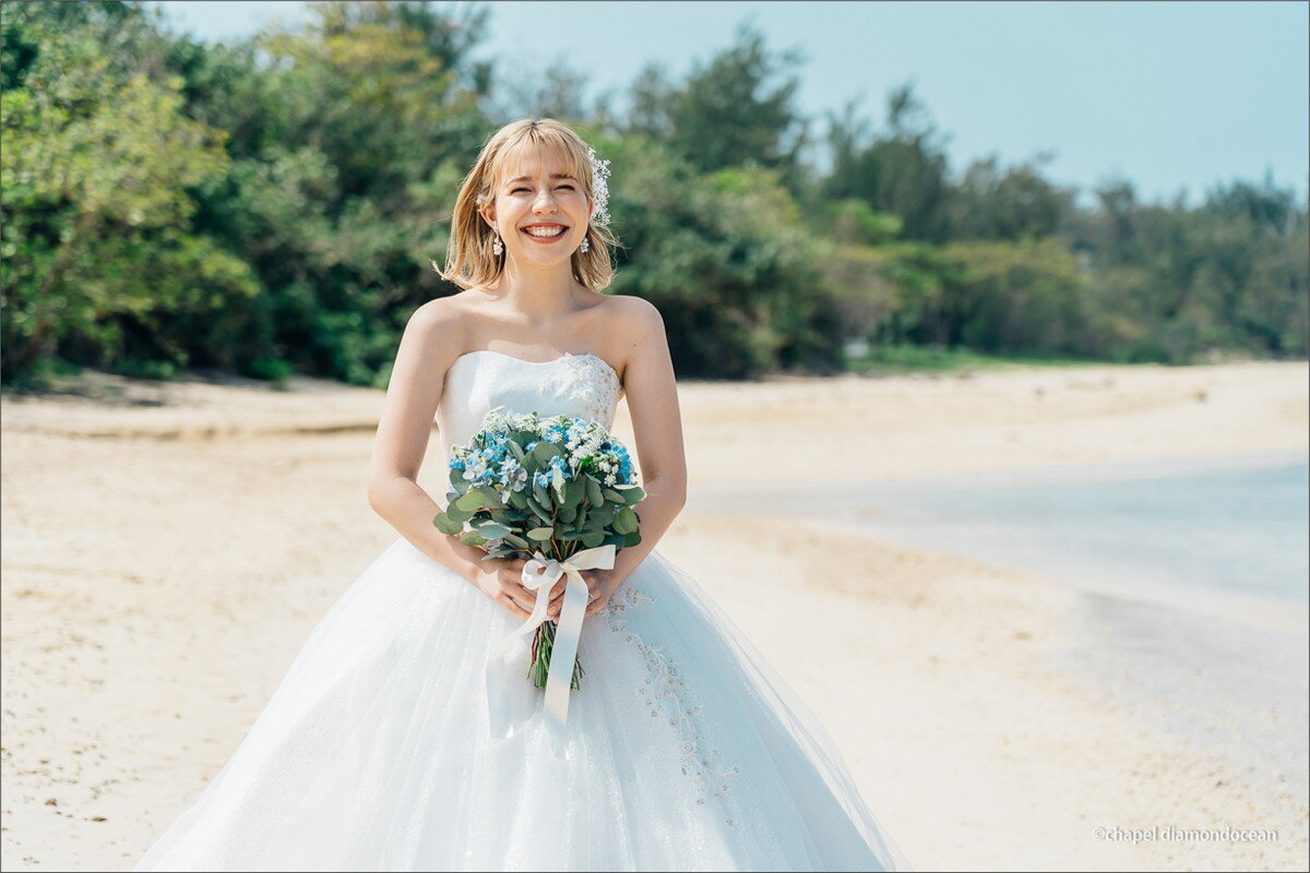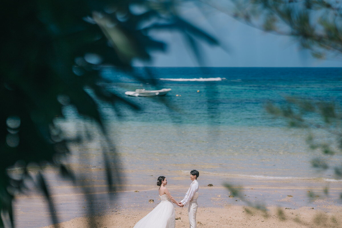 全面ガラス張りのチャペルでは、海と空に囲まれたような幻想的な写真を。続くビーチ撮影では、自然な笑顔と開放感あふれる一枚を残せます。異なるロケーションで撮影できる、満足度の高いフォトウェディングプランです。