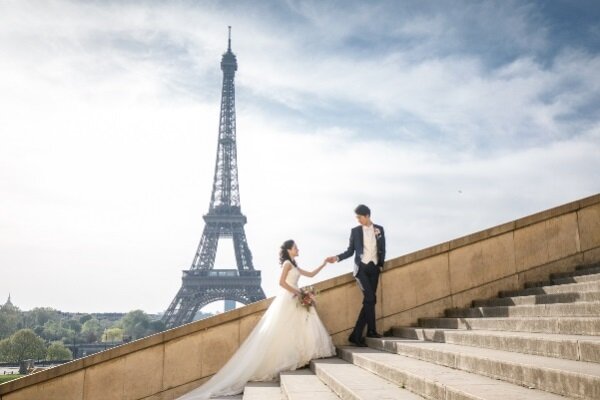 <撮影場所>エッフェル塔周辺・凱旋門・アレキサンダー三世橋・モンマルトル周辺・セーヌ河岸(シテ島周辺)・ヴォージュ広場周辺から3ヵ所選択