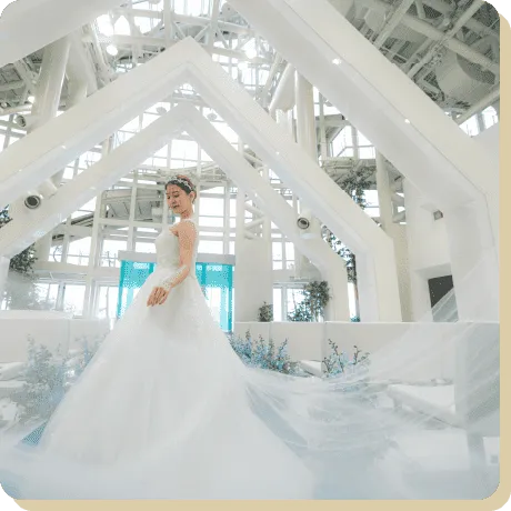 永遠の憧れである純白のウェディングドレスや、パッと目を引くカラードレス、色鮮やかなデザインの和装までさまざまです。