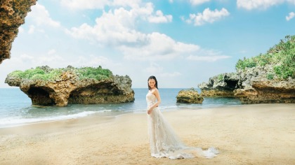 沖縄の美しいビーチで撮影する