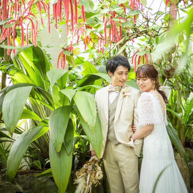 開花中の季節を感じる花々や、緑深い植物を背景にナチュラルなウェディングフォト撮影が叶います。