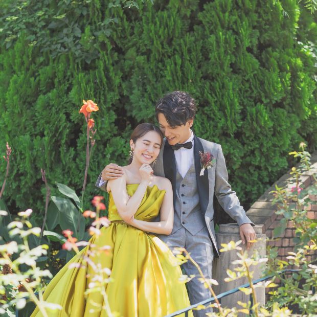 庭園には珍しい階段や渓流の岩場のようなところがあり、石造りのアーチ橋は特に人気で、印象的な風景の写真が残せます。春は梅、秋は紅葉の中で撮影ができ、フォトジェニックなウェディングフォト撮影が可能です。