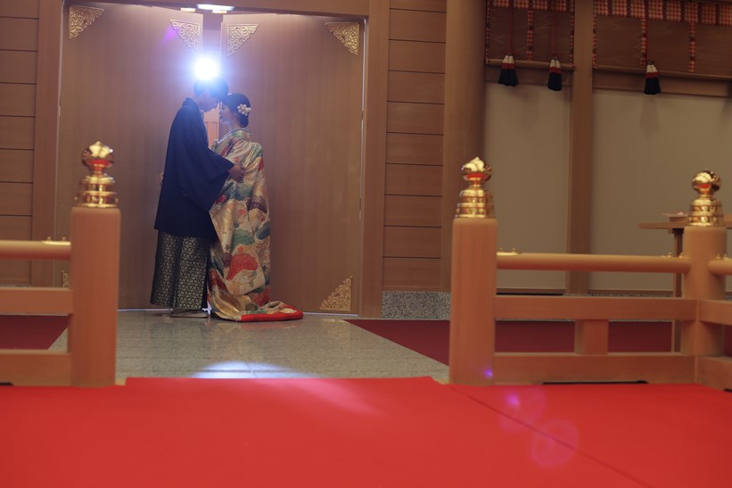 神殿での撮影は本格的な和装ショットをのこすことができるのでとても人気です。見返す度に幸せになる、そんなお写真を求めてお手伝いさせていただきます!