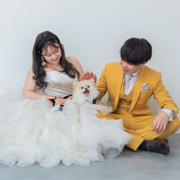 大切なワンちゃんネコちゃんとスタジオでウェディングフォトの撮影ができます