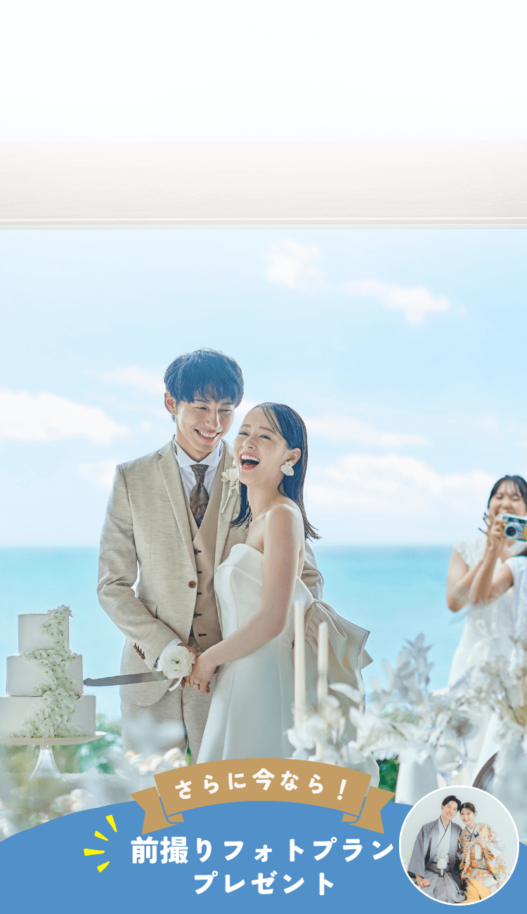 約2〜3時間のフライトで出会える青い海と白い砂浜。南国の開放感あふれるロケーションが、ふたりの特別な瞬間を演出します。