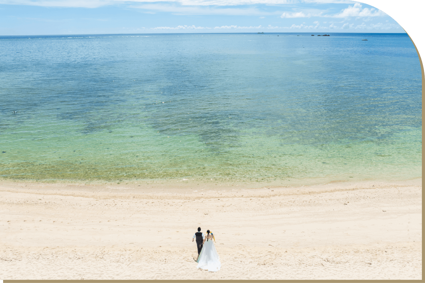 約2〜3時間のフライトで出会える青い海と白い砂浜。南国の開放感あふれるロケーションが、ふたりの特別な瞬間を演出します。
