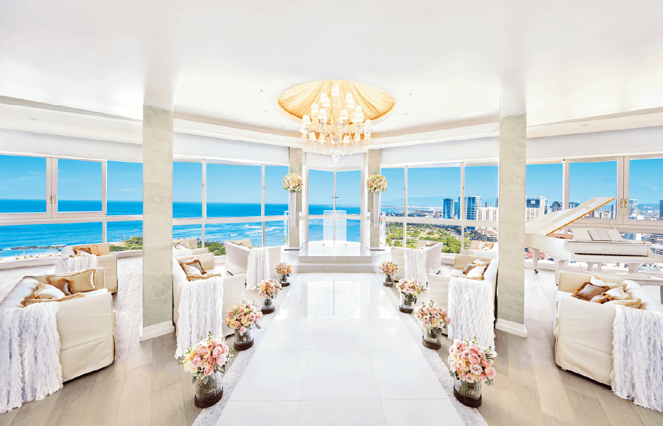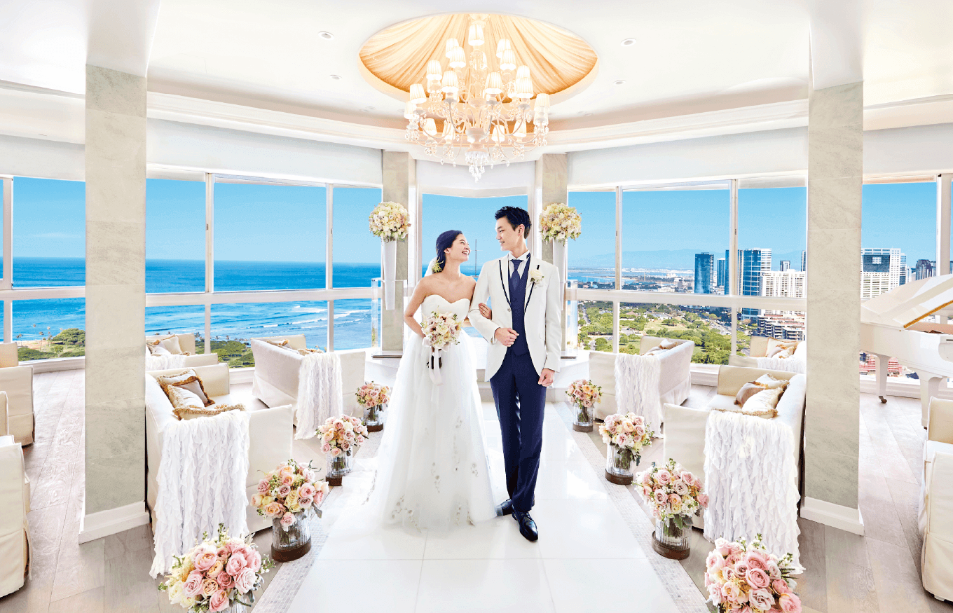一年を通して晴天率が高く、どこまでも続く青い海と空。ダイヤモンドヘッドを望む絶景やサンセットの光が、ふたりの誓いをより神聖で美しい瞬間に演出します。