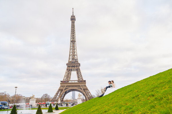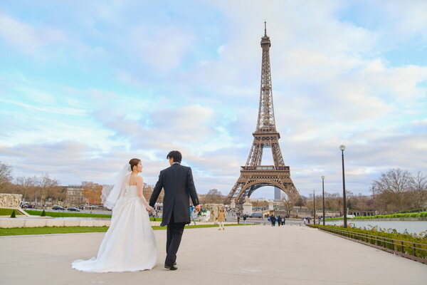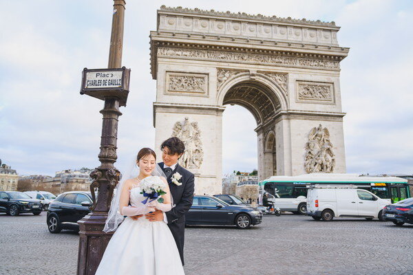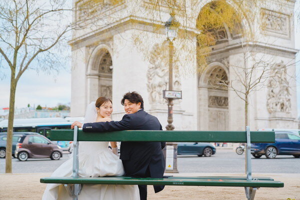 パリを代表するロケーションから2カ所を選べるフォトウェディングを行いました。エッフェル塔と凱旋門ではおしゃれさと大人な魅力を感じる特別な撮影が楽しめます。