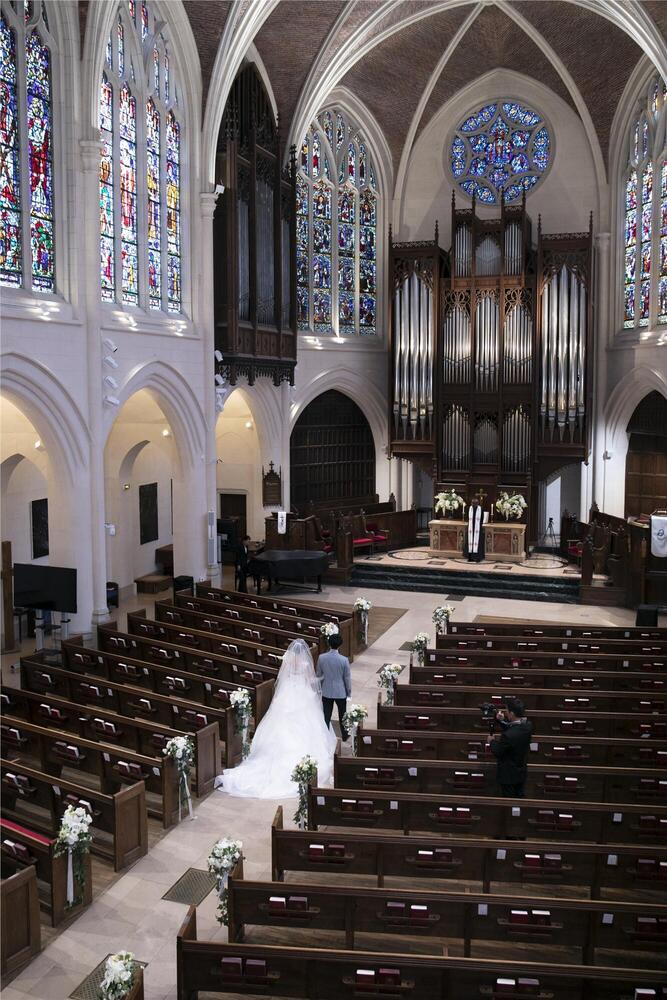 ステンドグラスとパイプオルガン、教会の雰囲気を気に入ったため