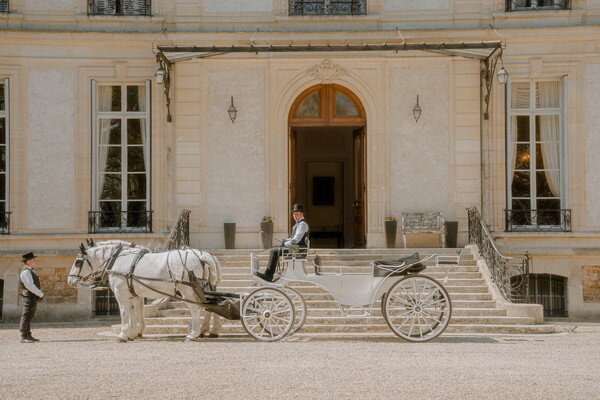 挙式後は館内での撮影や馬車での散策を楽しまれ、城主との会話やシャンパンでの乾杯など、フランスならではの優雅な時間を満喫。リラックスした雰囲気の中で、特別な一日をお過ごしいただきました。