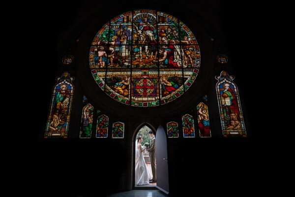 石造りの祭壇や優美なアーチ、色彩豊かなステンドグラスに囲まれた厳かな空間が広がる「セント・ジェームス教会」にて、歴史と格式を感じる挙式が行われました。