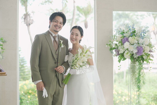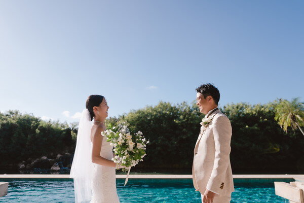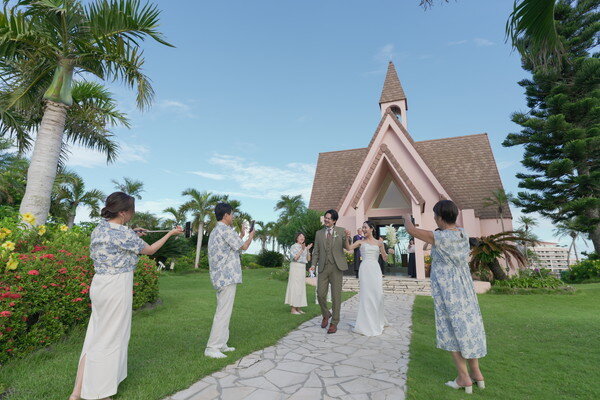 コロナの影響で一度ご挙式をキャンセルされましたが、再度お申込みをいただき5年越しの結婚式を挙げられました。シギラリゾート内で完結のできるアラマンダチャペルでの挙式は、お子様連れのカップル様には大変お勧めです。チャペルへ続くウェディングロードはお母様と。今まで一番近くにいてくれた大切な人とともに歩むチャペルまでの道は一生の思い出になっていただけることでしょう。リゾート内にあるシギラリビーチでは、お二人のお子様やゲスト様と一緒に、東洋一美しいと言われる前浜ビーチでは、お二人きりでの撮影をお楽しみいただきました。沢山の美しいビーチが存在する宮古島。それぞれ魅力の異なるビーチ2種で撮影ができるのも宮古島挙式の醍醐味となります。