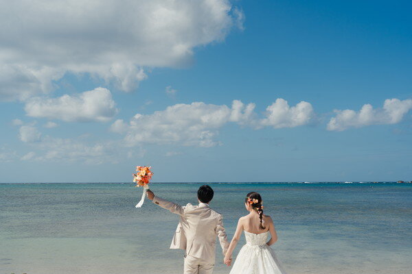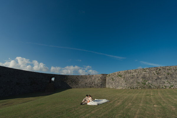 挙式後はビーチでの撮影や、世界遺産・座喜味城跡でのフォトツアーも楽しまれ、沖縄ならではのロケーションを満喫されました。ご家族やご友人と過ごす時間も和やかで、笑顔あふれるあたたかな一日となりました。